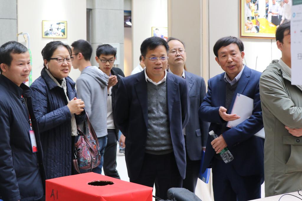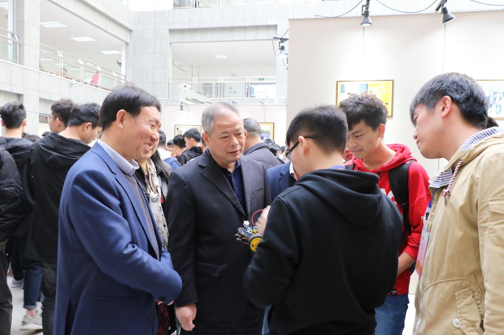 谭益民、罗定提在展览现场观看了学生的项目模型,听取了关于项目的详细介绍,并与学生进行了交流。