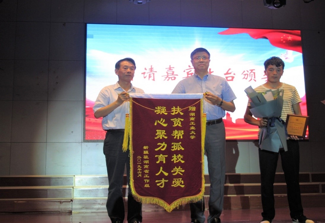 典礼上播放了感动人物的VCR,宣读了颁奖词,现场采访了感动人物,并请出席活动的领导分别为“感动包材”优秀大学生获奖同学进行颁奖。石建为自强励志之星颁奖,并对湖南工业大学的民族团结工作表示了肯定,向湖南工业大学赠送了锦旗;韩清波代表学校接受了锦旗。