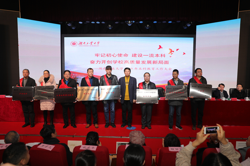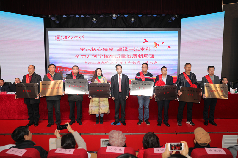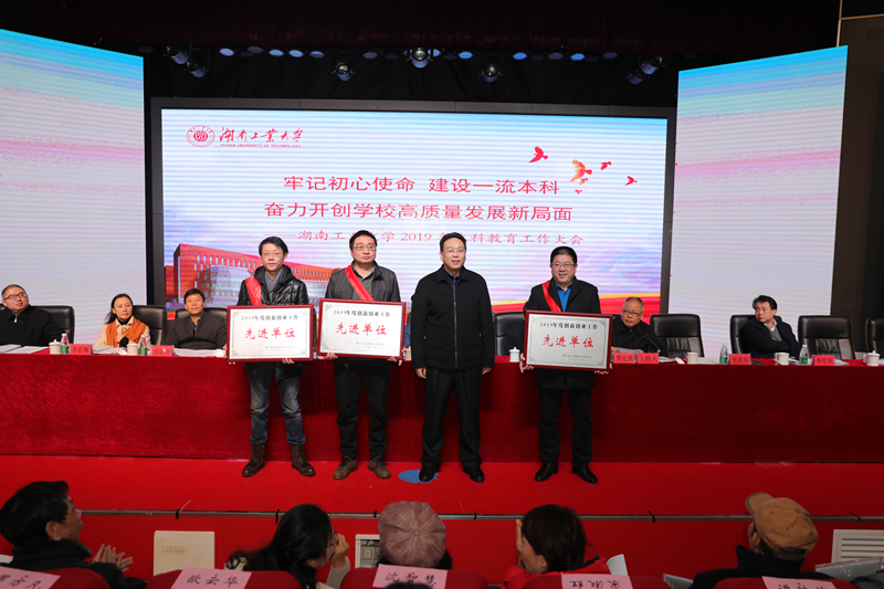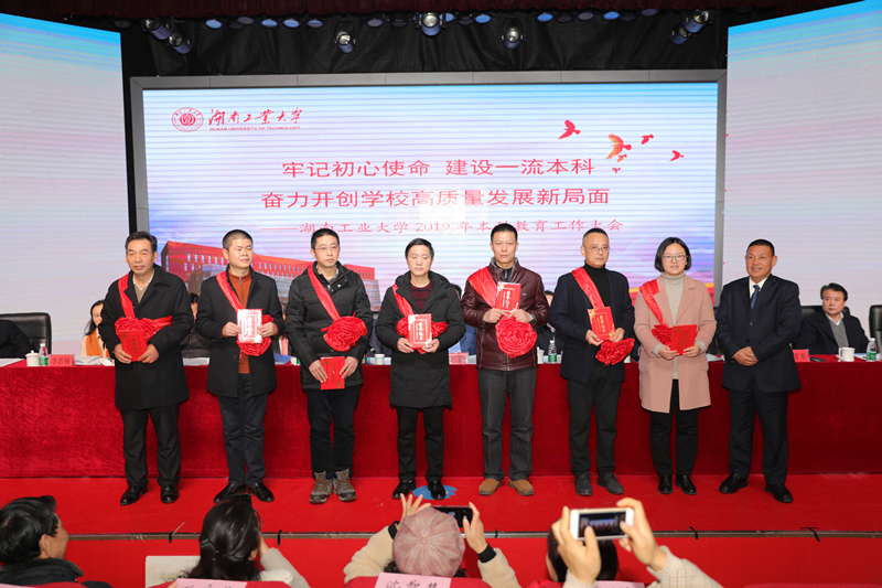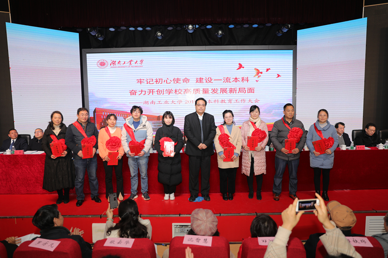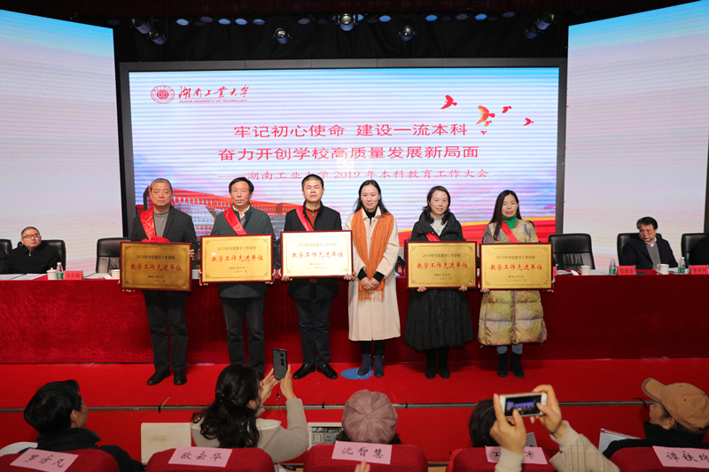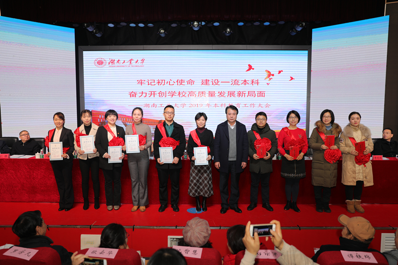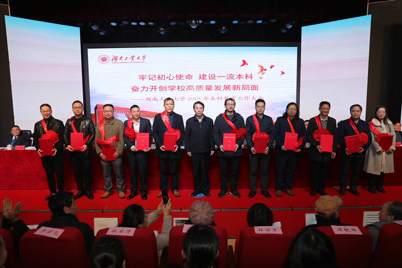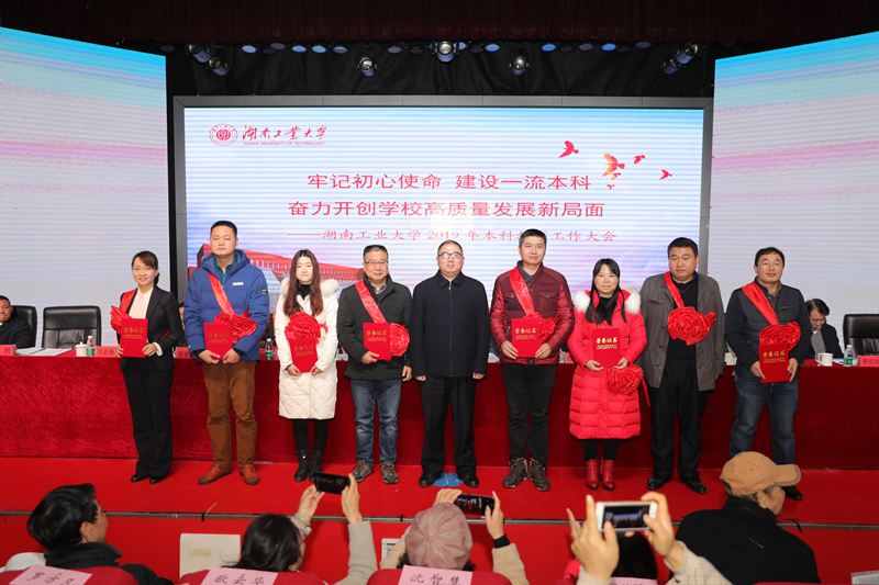 副校长张昌凡宣读了教学奖励表彰决定。温辉、姚齐水等11人获2018年国家教学成果奖;何静等16人获2019年省级教学成果奖;产品设计等16个专业立项为湖南省一流本科专业建设点;《C语言程序设计》等8门课程认定为省级精品在线开放课程;“暖通空调系统综合”等2个项目被认定湖南省虚拟仿真实验教学项目;乔湘平获全国优秀教师称号;朱和平、陈若松教授获湖南省芙蓉教学名师称号,邓统湘等7人获2019年湖南省普通高校教师课程教学竞赛奖;包装设计艺术学院等5个学院获“教学工作先进单位”;包装设计艺术学院等3个学院获“创新创业工作先进单位”;刘文良等2人获“教学名师”,邓统湘等19人获“优秀教学奖”;胡立和等20位老师获“华银杯”“课堂教学优秀奖”,张国华等30位老师获“优秀教务工作者”。与会领导为以上获奖单位和个人进行了颁奖。