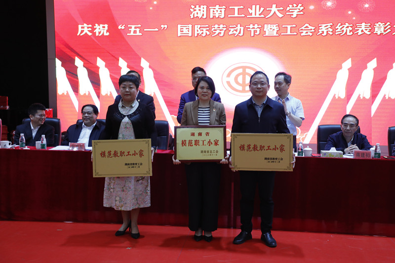 会议由校党委副书记王利华主持。工会主席韩清波在会上宣读了《湖南省总工会关于命名湖南省模范职工小家的决定》《 湖南省教育工会关于命名湖南省模范教职工小家的决定》,校图书馆分工会获得湖南省模范职工小家殊荣;国际学院分工会、马克思主义学院分工会获得湖南省模范教职工小家殊荣。韩清波还宣读了《关于表彰我校2019-2020年度“先进分工会”“优秀工会干部”“ 工会工作积极分子”的决定》《关于表彰我校第三届“文明家庭”的决定》,授予经济与贸易学院等8个分工会为2019-2020年度湖南工业大学“先进分工会”荣誉称号;授予李贞等30名同志为2019-2020年度湖南工业大学“优秀工会干部”荣誉称号;授予冷娴等195名同志为2019-2020年度湖南工业大学“工会工作积极分子”荣誉称号;授予张波等25户家庭“湖南工业大学第三届文明家庭”荣誉称号。校领导为获奖者颁奖。