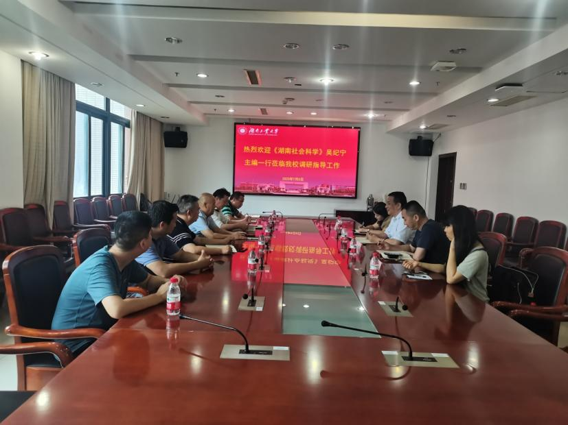 7月5日下午,社科处邀请湖南省社科联《湖南社会科学》主编吴纪宁一行4人来校座谈交流,社科处、期刊社负责人及近5年国家社科基金项目负责人参加座谈。