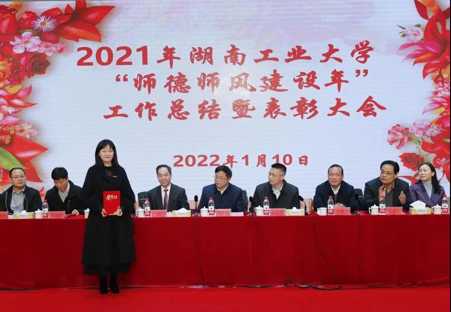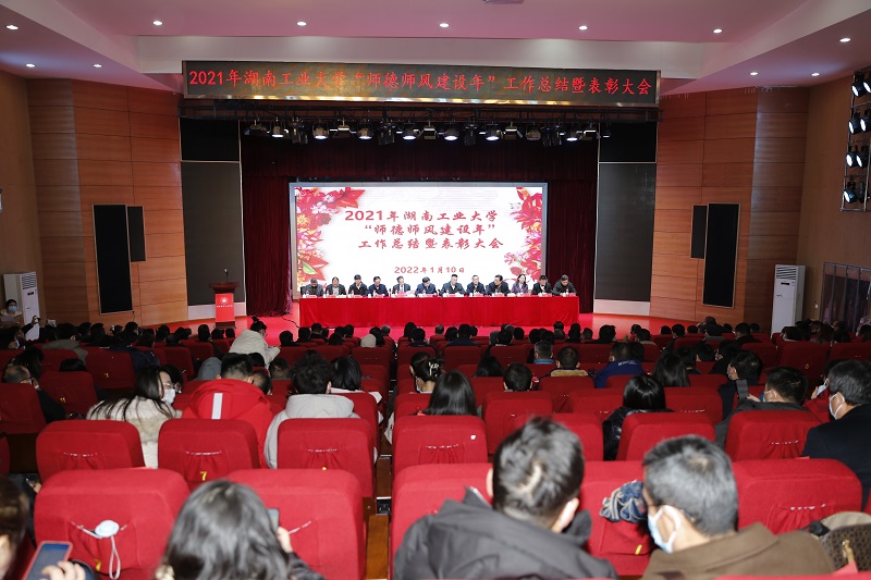副校长佘朝文做《2021年湖南工业大学“师德师风建设年”工作总结报告》,他回顾了2021年学校各部门师德师风建设工作所取得的成绩,同时指出了存在的不足,并且对新的一年如何加强师德师风工作提出了具体意见。