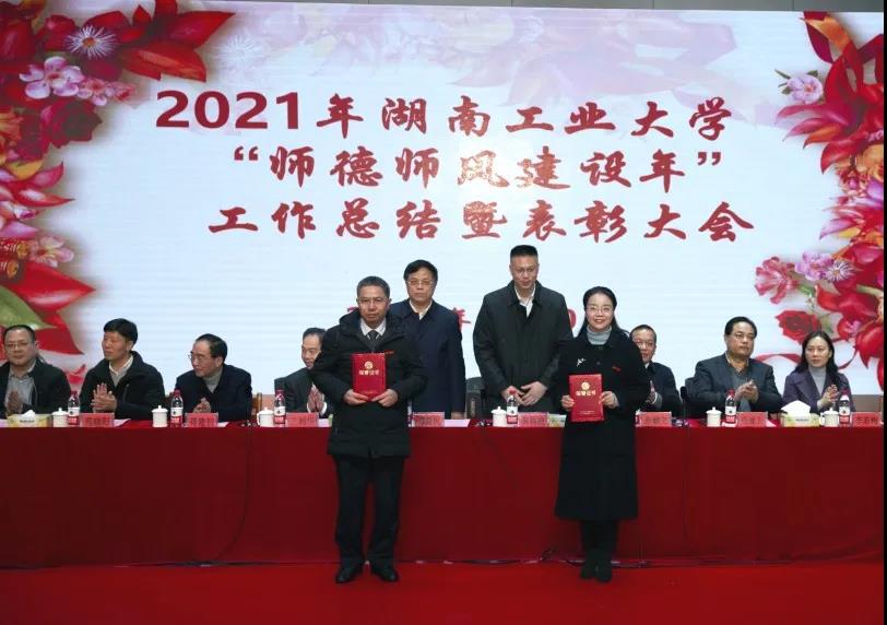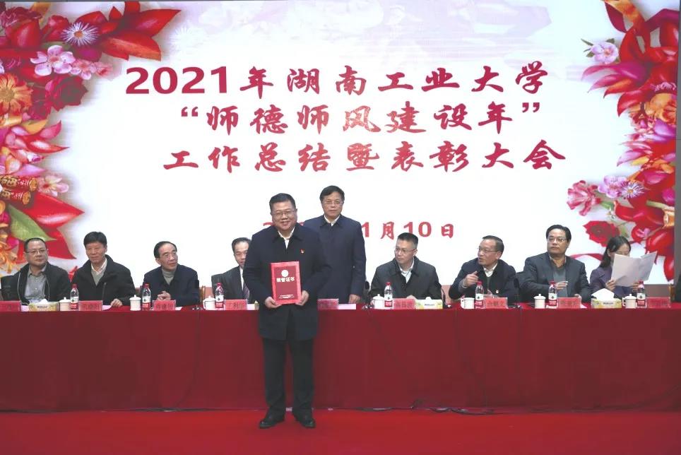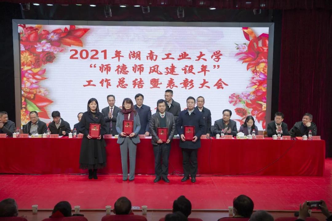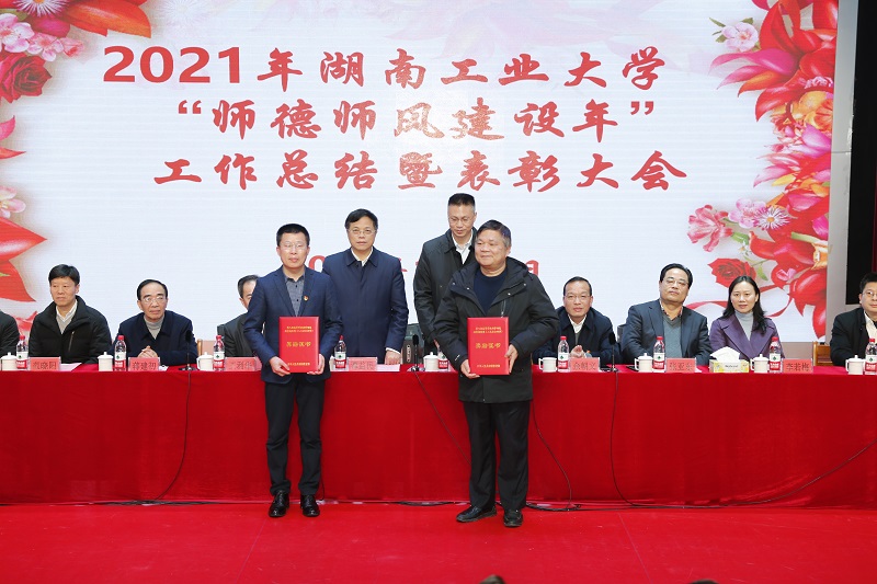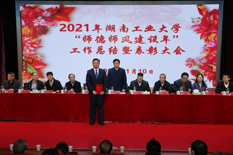 党委副书记王利华宣读了关于表彰获得部、省、市级有关奖项人员的决定;副校长蒋建初宣读了关于表彰第二届“教学名师奖”“优秀教学奖”的决定;副校长殷晓元宣读了关于表彰2021年湖南工业大学“师德标兵”的决定。