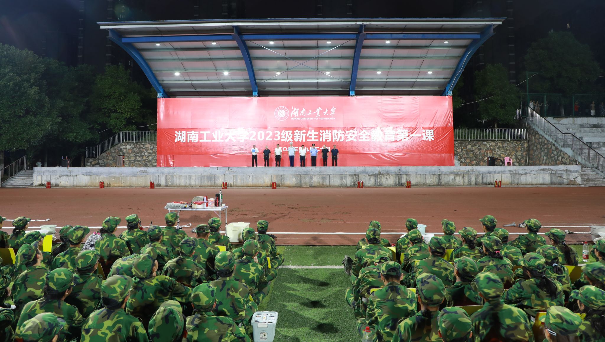 9月20日,我校联合株洲市消防救援支队在河西校区第二田径场、河东校区田径场开展2023级新生消防安全教育第一课活动。副校长范晓阳出席活动并讲话。
