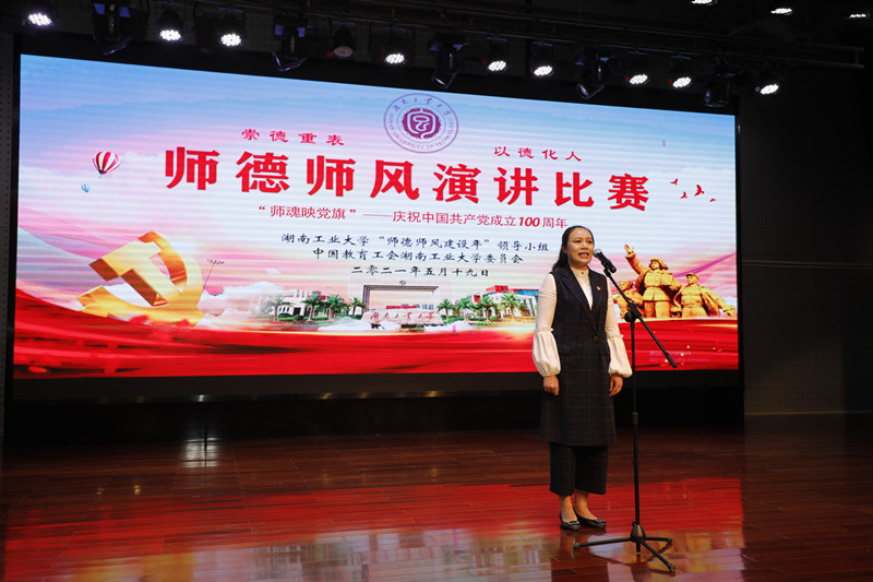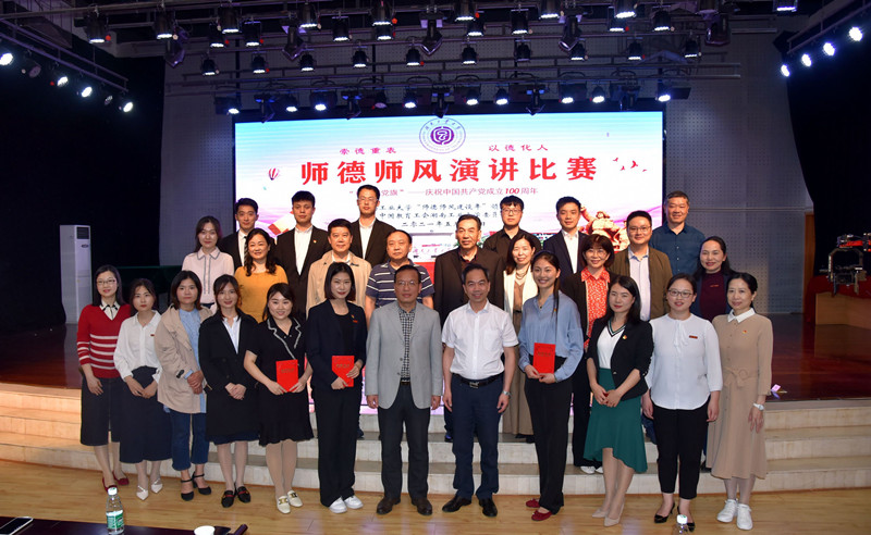 5月19日晚,我校庆祝中国共产党成立100周年系列活动之一“师魂映党旗”师德师风演讲比赛在崇文楼多功能演播厅举行。此次比赛由校工会承办,来自各院系推选出的19名参赛选手参加了比赛。校领导王利华、佘朝文莅临会场观看比赛并为获奖选手颁奖,各分工会主席、师生代表以及参赛选手亲友团200余人观看了演讲比赛。