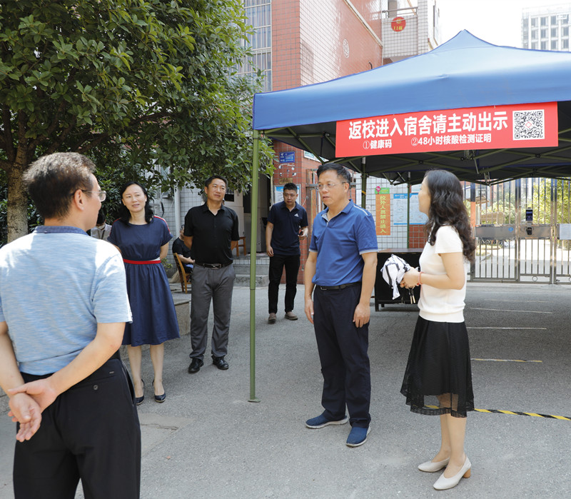 为迎接师生返校,9月3日上午,校领导谭益民、蒋建初、李若梅、于惠钧就新学期开学疫情防控和校园安全工作进行检查。