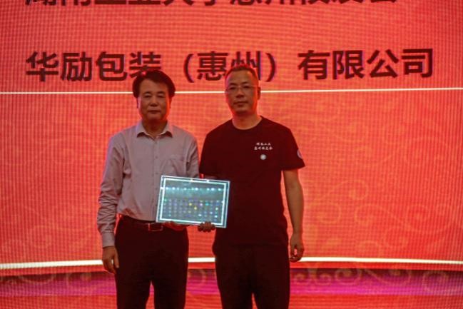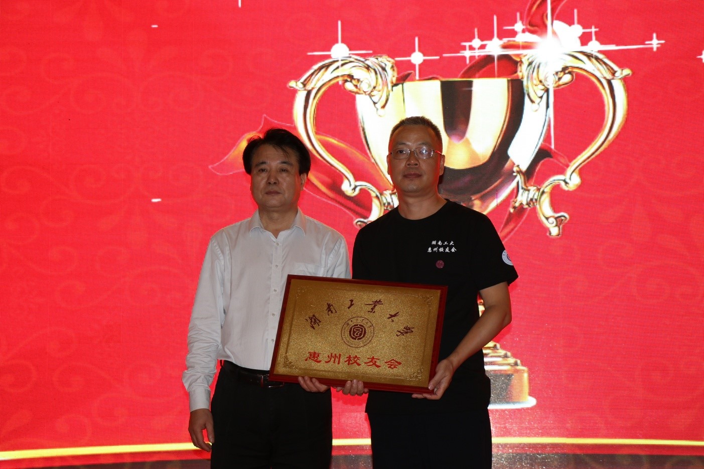 李可兴为湖南工业大学惠州校友会授牌,并为当选的惠州校友会第一届理事会成员颁发聘书。