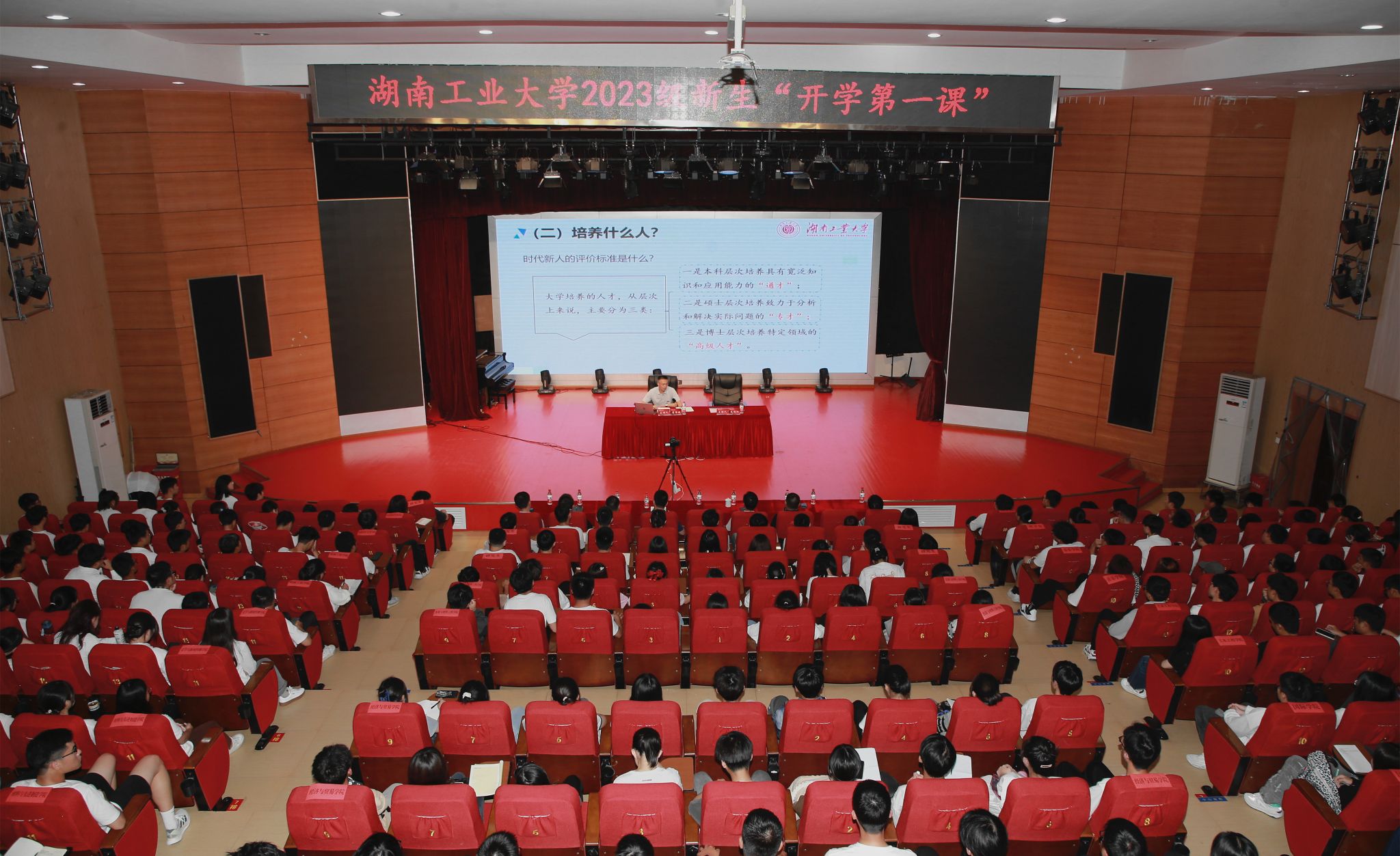 9月26日晚,校长蒋昌波为2023级新生讲授题为《立鸿鹄志,做追梦人》开学第一课,旨在帮助全体新生扣好大学的“第一粒扣子”。副校长范晓阳负责主持。