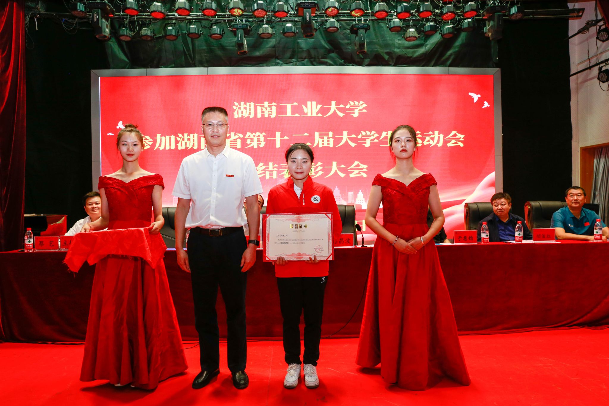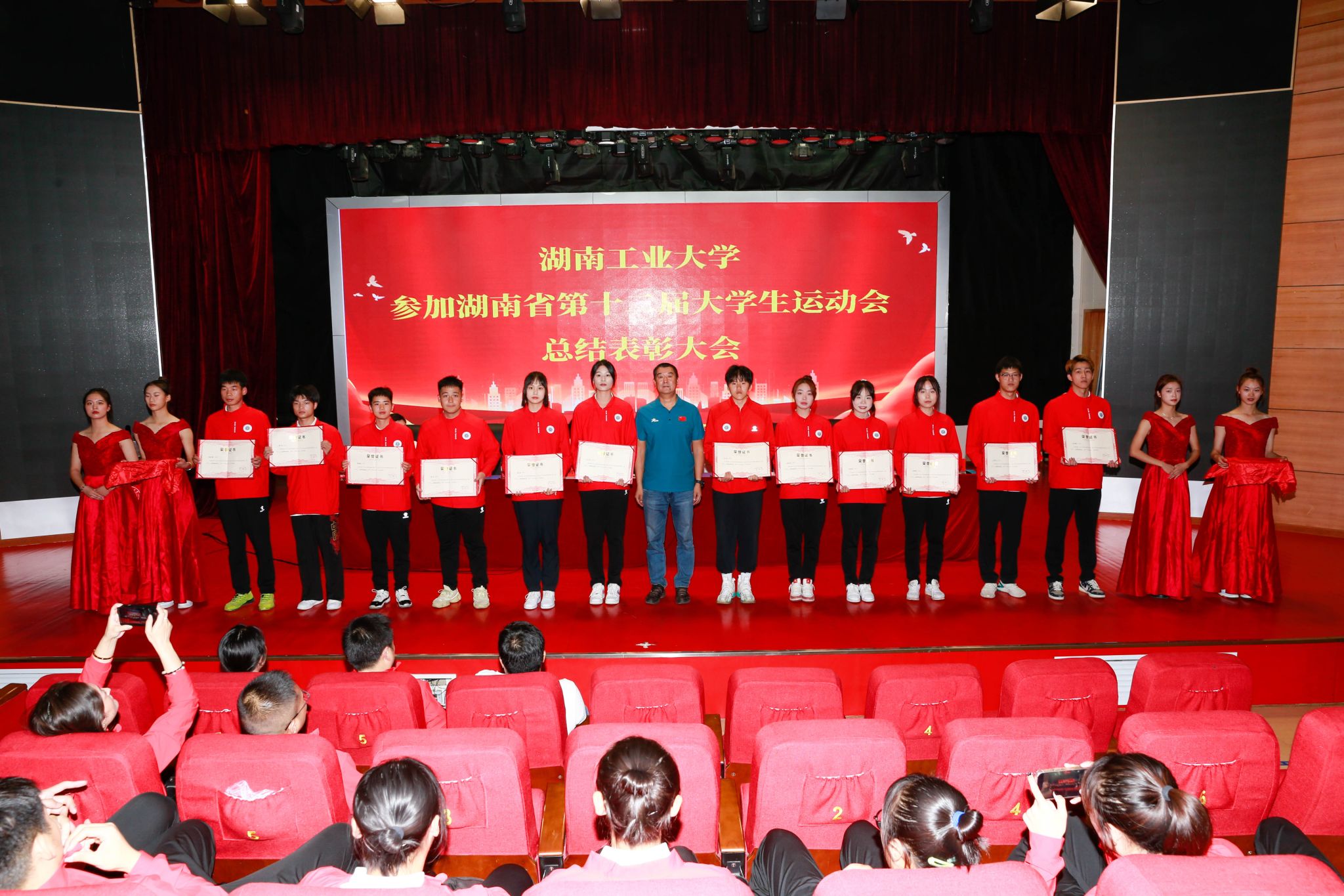 据悉,我校代表团在学校党委的关心和支持下,全体教练员、运动员团结一致,奋力拼搏,荣获大学组体育竞赛团体总分第三名(积分1260分),大学组奖牌榜第三名(19金27银52铜),获得湖南省第十二届大学生运动会“校长杯”荣誉称号,并获“优秀代表团”。