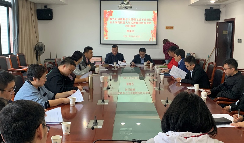 10月15日下午,我校举行海外归国教师“学习贯彻习近平总书记给全国高校黄大年式教师团队代表重要回信精神”座谈会。副校长佘朝文出席,来自不同学院的20名海外归国教师代表参加了此次座谈会。