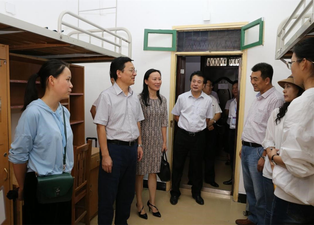 10月4日至5日,党委书记唐未兵,校长谭益民,副校长李可兴、李若梅等来到各二级学院迎新接待站、新生宿舍等地,慰问迎新工作人员,看望新生与家长。