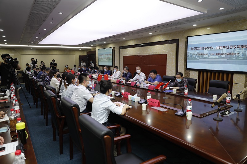 为打造高校马克思主义理论教学科研共同体,逐步提升新时代思政课建设水平,切实推动马克思主义学院高质量发展,3月15日下午,我校与湖南大学、湖南工业职业技术学院三校马克思主义学院教师代表在崇德楼401会议室召开学习习近平总书记“3·18”重要讲话三周年座谈会,共商手拉手协作,共促思政课质量提升。副校长殷晓元、湖南工业职业技术学院党委副书记陈拥贤、湖南大学党委常委唐珍名出席,学校有关职能部门负责人以及三校师生代表参加会议。
