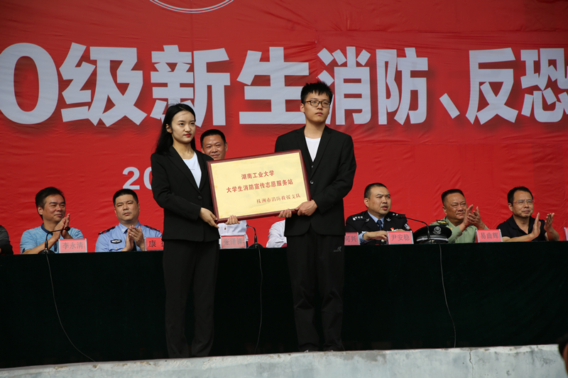 张泽锋充分肯定了学校消防工作及安全教育所取得的成绩,并为我校“大学生消防宣传志愿服务站”授牌。尹安稳希望广大师生深入了解当前反恐怖斗争的形势;认真学习反恐防恐的基本知识、常见容易违反《反恐怖主义法》的行为、暴恐线索举报、自我防护技能等;并号召广大师生自觉抵制恐怖主义思想。