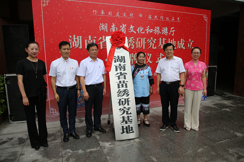 湖南省文化和旅游厅非遗处、全省苗绣行业代表、国家、省级苗绣传承人、十八洞村苗绣合作社、邵阳市城步苗绣基地、湖南工业大学师生代表等出席活动仪式。仪式当天下午研究基地分别在湖南工业大学举行了苗绣与乡村振兴对话会、苗绣创新创业研讨会、苗绣设计主题研讨会。