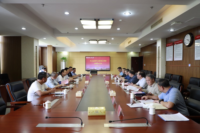会上,党委书记刘望对邬凌云一行来校表示欢迎,对天元区区委、区政府一直以来对学校的关心和支持表示感谢。他指出,为贯彻落实省教育厅《关于开展全省教育系统安全大检查工作的通知》和《关于做好学校建筑安全隐患专项排查整治工作的通知》等有关文件精神,学校领导班子成员已经带队开展了多轮校内检查。希望通过此次现场办公,天元区区委、区政府以及相关职能部门能与学校一同寻找解决方案,通过排查整改,防患于未然,全面提升校园安全整体水平。