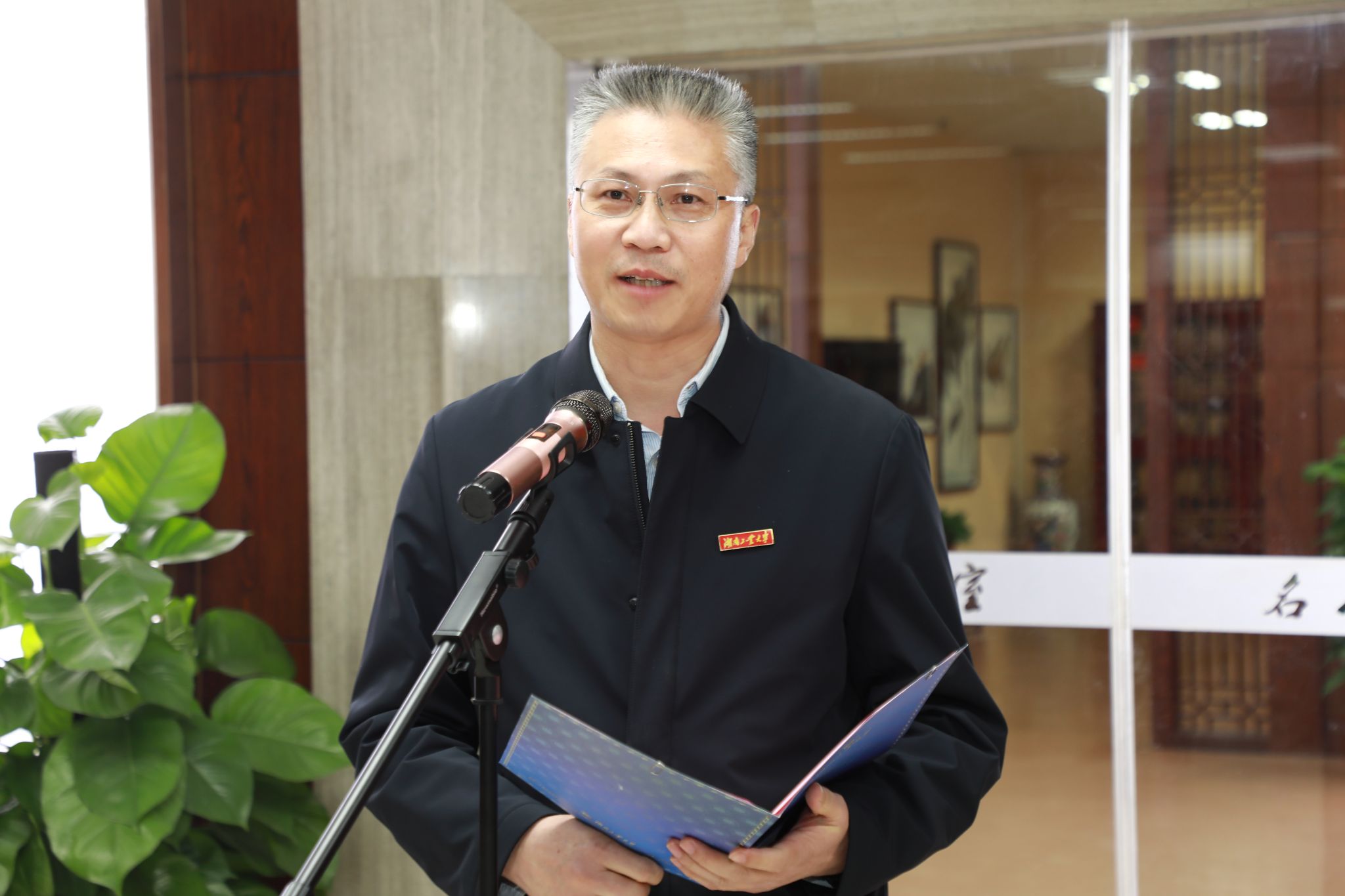 蒋昌波代表学校致欢迎辞。他表示,徐铭作为一名工大学子,时刻关心母校的建设与发展,坚持用自己的心血之作助力母校人才培养和文化建设。此次建立“徐铭艺术馆”的目的,就是要更好发挥这批文化资源在人才培养中的共享价值和赋能作用,更好传承工大学子的优良品格和爱校情怀。他衷心希望“徐铭艺术馆”能成为学校以文化人的重要载体、精神文化的重要窗口和爱校教育的重要基地,并祝愿徐铭校友继续坚持德艺双馨,创作出更多弘扬时代主旋律的优秀作品,用自己的作品传承时代精神、彰显民族自信。