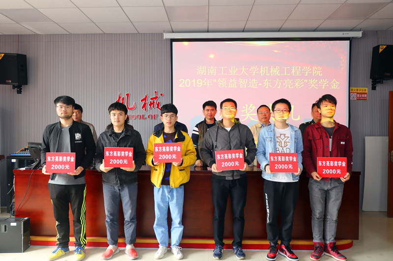 4月16日上午,机械工程学院在崇真楼举行2019年“领益智造-东方亮彩”奖学金颁奖典礼。校党委副书记韩清波出席,“领益智造-东方亮彩”精密技术有限公司人力行政中心总监欧耀林、学生工作部(处)相关负责人、学院领导班子成员、学生辅导员、获奖学生等参加典礼。
