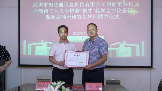 7月4日,计算机学院在崇慧楼402会议室举行了“聚才”奖学金捐赠仪式。校党委副书记王利华出席,深圳市聚货通信息科技有限公司(以下简称“聚货通”)董事长谢逊,校友联络与服务中心、计算机学院相关负责人参加会议。