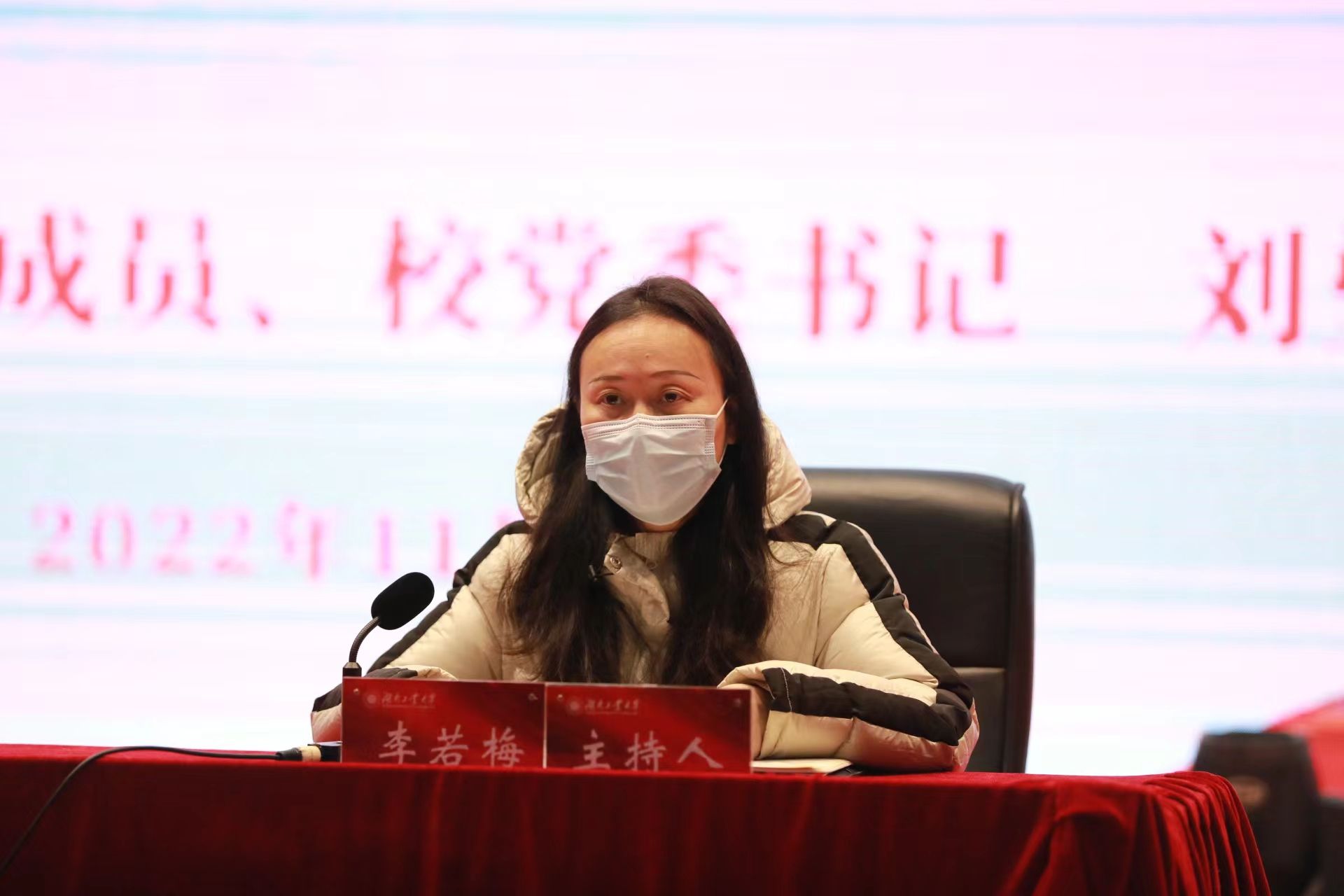 李若梅指出,刘望书记的宣讲报告站位高远、内容翔实、视野开阔,具有很强的思想性、理论性、实践性和指导性,帮助我们深化了对党的二十大精神的理解,也深入解答了师生关心关注的问题。同时书记对学校广大干部教师和青年学生主动请缨、不惧艰险毅然奔赴抗疫一线,从事疫情防控志愿服务工作给予了高度肯定。各单位一定要认真总结,将今天的宣讲内容“好好消化,入脑入心”,将党的二十大精神内涵“内化于心,外化于行”,最终打赢疫情防控这场阻击战。