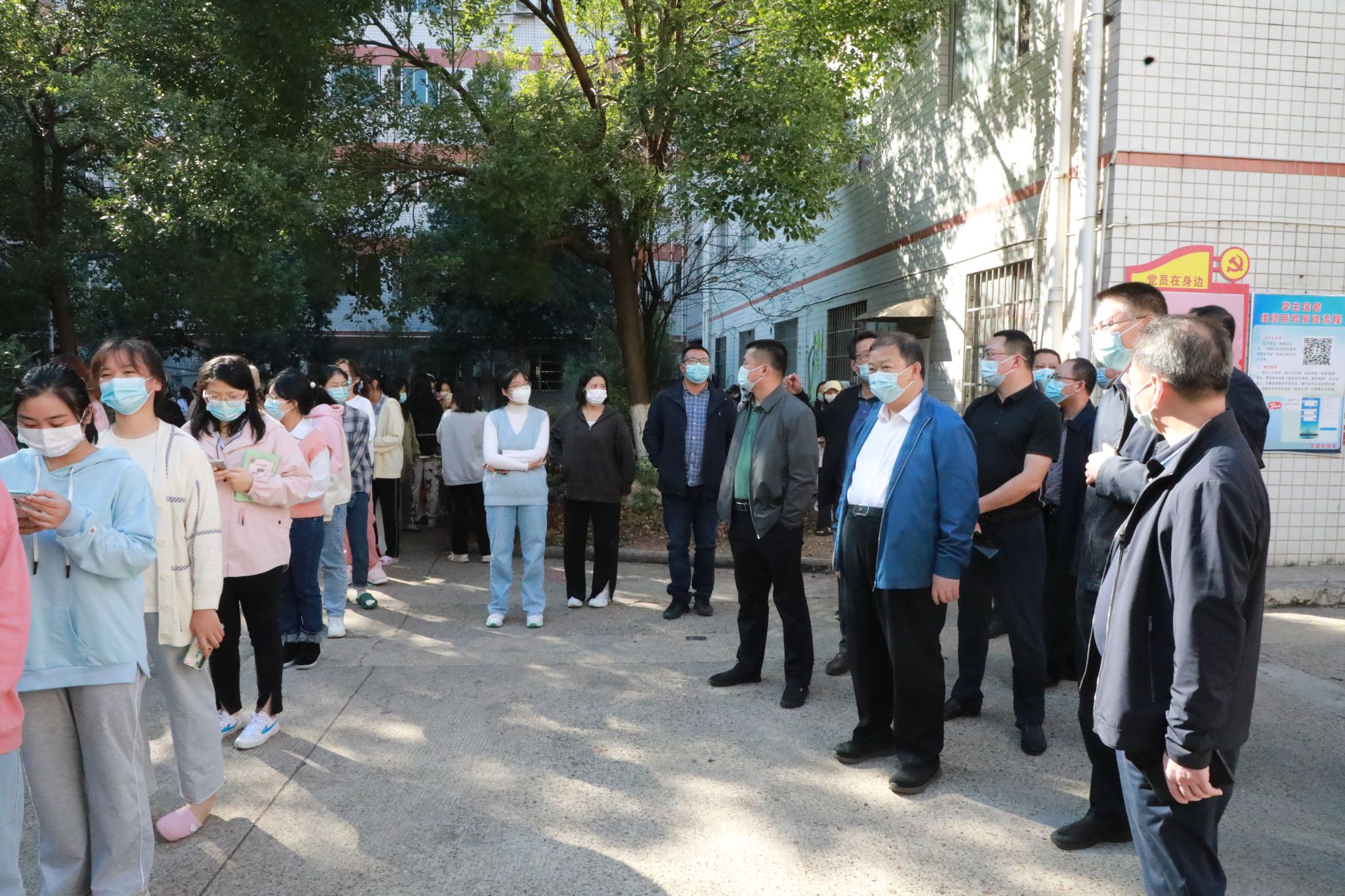 校领导察看核酸检测现场