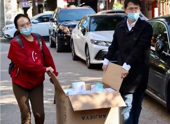 在这群忙碌的身影中,还有一群本应 “静默”在家的教师,因为心中的牵挂,他们主动离开家庭,迎难而上,积极投身校园疫情防控工作,为学生们提供志愿服务。生化学院的余礼老师,心中始终牵挂着班级里有先天性心脏病的同学,在得知学院所在楼栋学生暂时还未吃上饭,在学院微信群主动询问“班里有个学生患有先天性心脏病,我怕她吃不到饭着急,我们老师可以给学生送东西吗?”他的提问得到了大家的积极响应,学院教师们自发购买了几百份牛奶、方便面、火腿肠、水果、面包以及矿泉水等物资送到还未吃上饭的学生宿舍,并自发值守在宿舍楼下,帮助解决学生的其他需求。同学们在朋友圈纷纷表示,深受感动和教育,一定会遵守学校防疫工作要求,好好在寝室学习生活。不止在生化学院,每个学院都有一群关心着学生的“余礼”,为校园防疫工作贡献着力所能及的力量,他们的辛勤付出,使我们坚信,同心同德、同舟共济,抗疫必将胜利。
