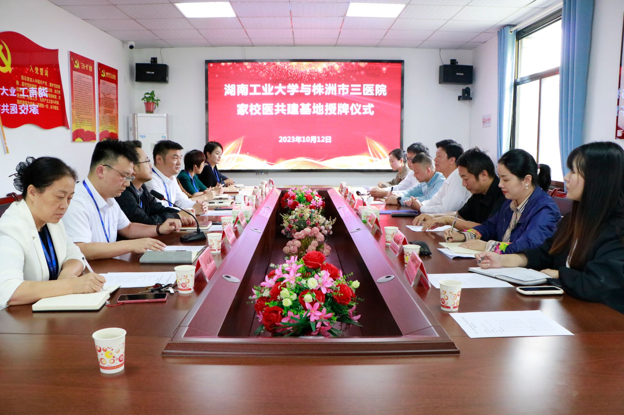 10月12日下午,我校与株洲市三医院举行医教结合“家校医共建基地”授牌仪式。副校长范晓阳出席,株洲市三医院党委副书记、院长刘铁林、三医院全体领导班子及我校学工部教师代表共同为家校医共建基地授牌。