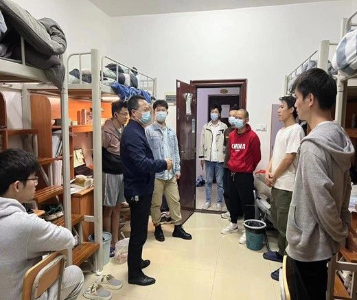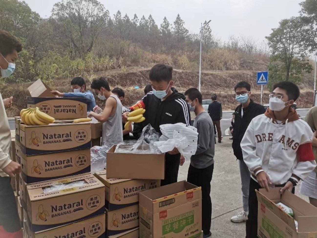 学院领导高度重视,针对同学们未能按时吃饭的问题,为大家准备了泡面、水果等生活物资,积极联系校友和合作单位捐赠防疫物资和急缺物资,全天候值守现场下沉一线给予同学们关心与慰问。11月2日晚,学院领导深入学生各宿舍,询问学生们学习、生活方面的情况与问题,有针对性地给予学生们建议,并详细解释了株洲市疫情防控政策,叮嘱学生们做好个人防护,齐心协力,共克时艰。