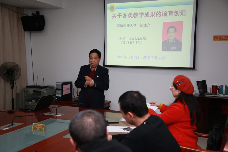 培训会邀请国家级教学名师、国务院特殊津贴获得者、全军优秀教师、首届军队院校“育才奖”金奖获得者、国防科技大学邹逢兴教授作题为“关于教学成果的培育创造”专题报告。邹逢兴教授从如何理解教学成果、如何创造教学成果、院校如何培育教学成果、如何正确认识教学成果及其获奖等四个方面,阐述了教育教学改革的时代内涵和现实意义,结合自身长期教学实践的经典案例讲授了教学成果的切入视角、凝练方法、成果选用等。邹逢兴教授的报告内容丰富,具有很强的指导性、针对性和可操作性,现场气氛热烈。