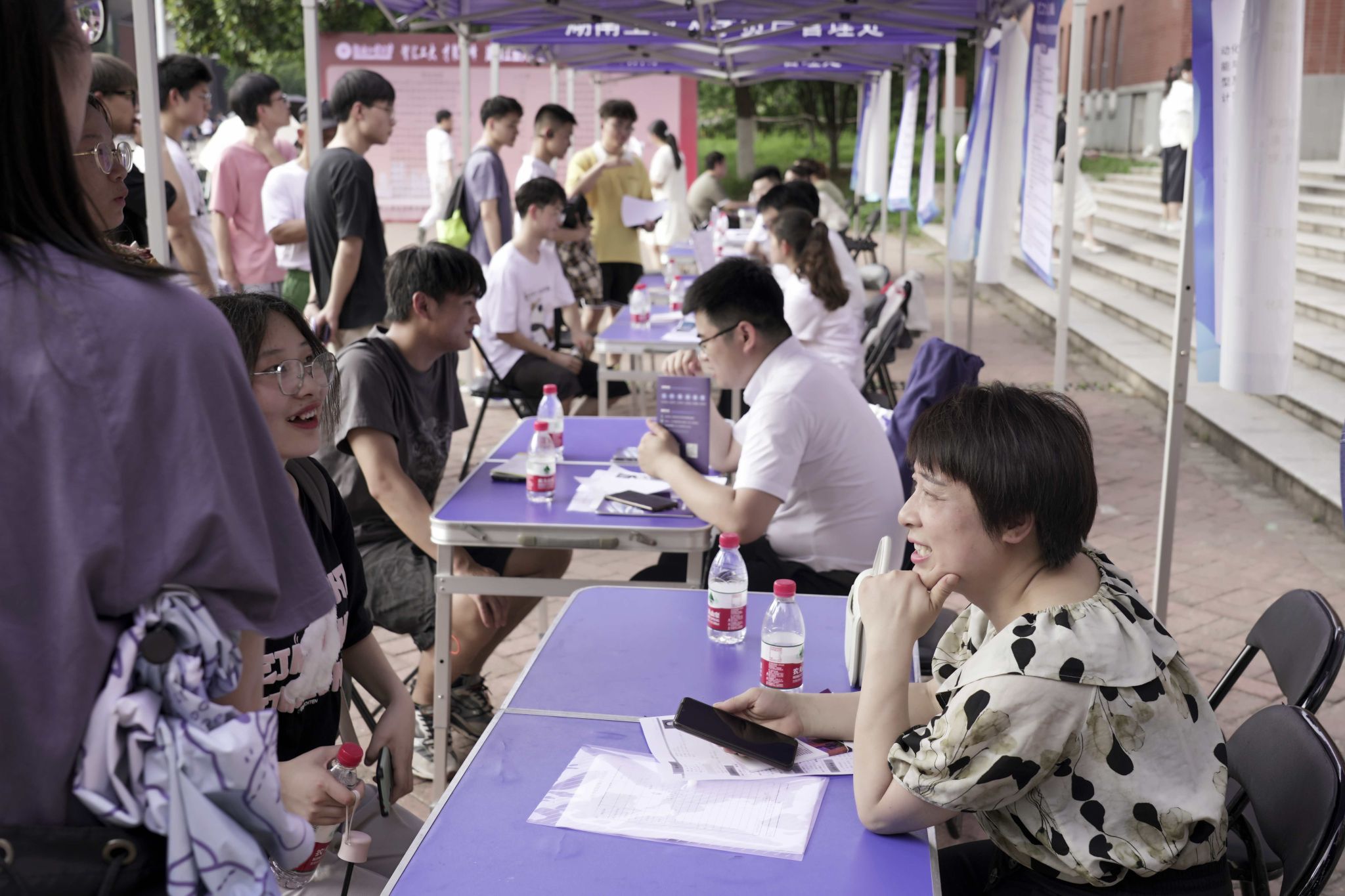 签约仪式后,石峰区、株洲经开区专场招聘会在崇学楼前坪举行,30余家企业近200个岗位入场招聘,吸引了我校大批应届毕业生应聘求职。