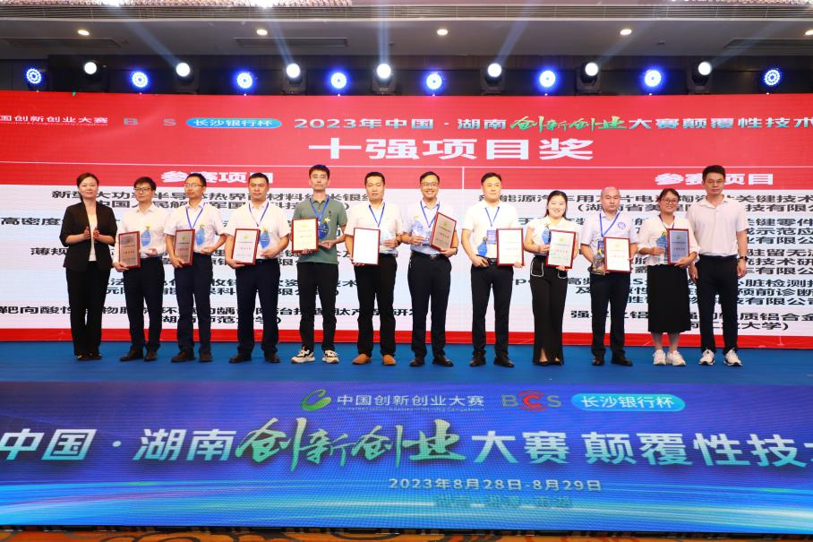 8月29日,湖南省颠覆性技术创新大赛决赛在湘潭市雨湖区开赛,全省100多家高校和企业中筛选进入决赛的25家单位在此角逐。比赛共设置两个奖项,进入前十的项目列入“十强项目奖”获奖名单,其余项目列入“优秀项目奖”获奖名单。