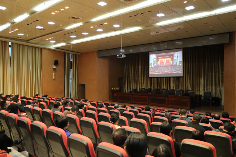 我校处级干部在崇德楼报告厅集中收看表彰大会