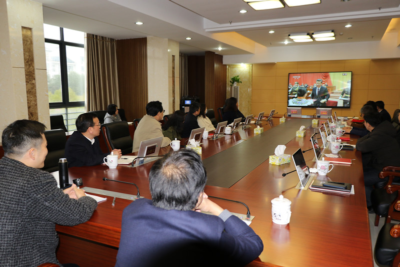 在崇德楼340会议室和报告厅,我校组织校领导、处级干部通过电视、网络等媒体平台收看全国脱贫攻坚总结表彰大会直播,学习习近平总书记在全国脱贫攻坚总结表彰大会上的重要讲话精神。
