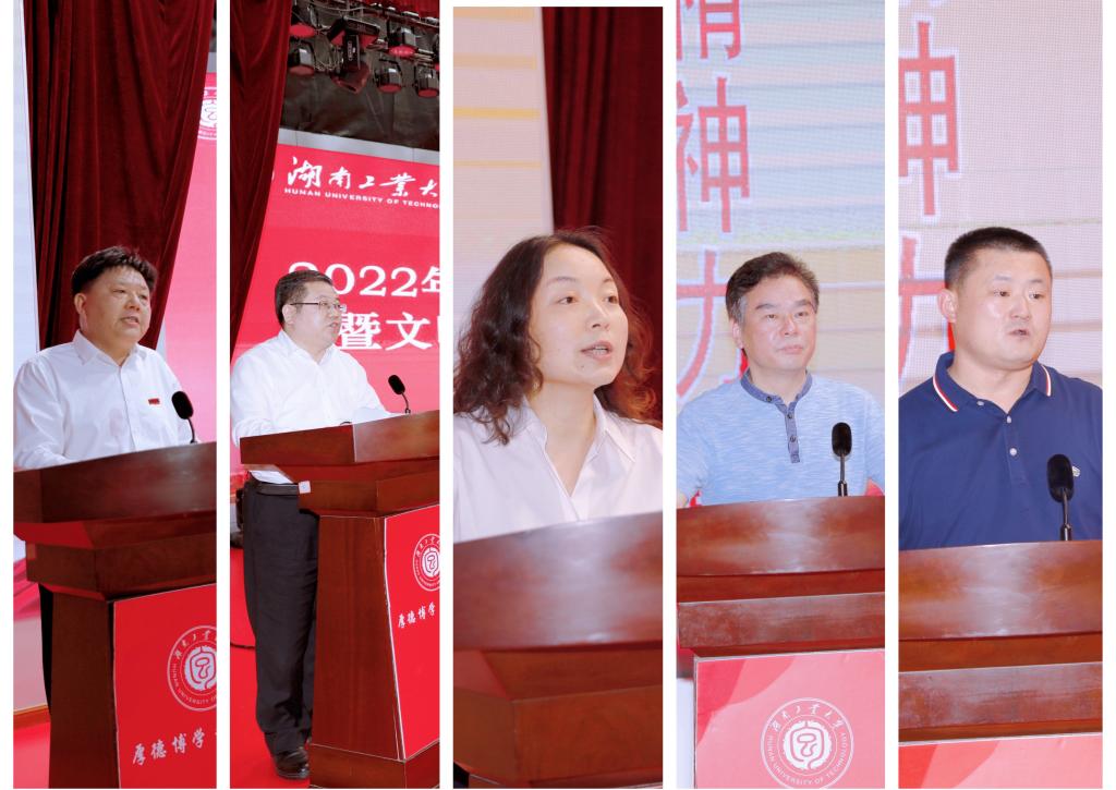 包装设计艺术学院、马克思主义学院、学生工作部、保卫处、后勤管理处负责人先后作文明校园创建工作的表态发言。他们郑重承诺,将从讲政治的高度强化使命担当,积极履职尽责,高标准、严要求推进文明创建工作,抓实抓细各项分解指标,高质量完成文明校园创建任务。
