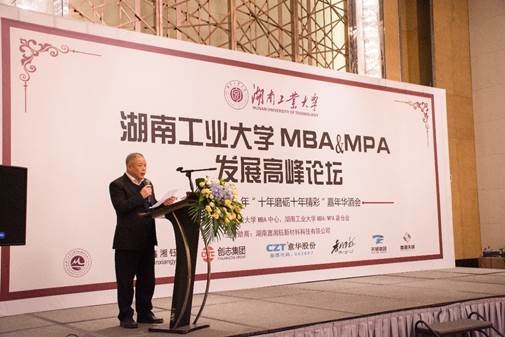 12月14日下午,湖南工业大学MBA&MPA发展高峰论坛在株洲万豪酒店举行。本届论坛由湖南工业大学MBA中心主办,湖南工业大学MBA/MPA联合会承办。全国MBA教指委秘书处办公室主任王萍,长江学者、湖南大学工商管理学院院长马超群,国务院学位委员会工商管理学科评议组成员、首都经贸大学学术委员会主任高闯,湖南省人大常委委员向佐谊、田际群,株洲市政府副秘书长周南洋,株洲市应急管理局局长殷顺堂和我校副校长罗定提出席,来自各兄弟院校的MBA中心负责人,我校MBA/MPA校友和师生代表等近200人参加了本次论坛。