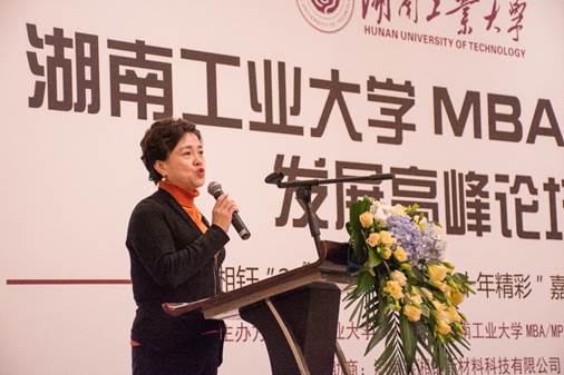 王萍对本次论坛的顺利举行表示祝贺,同时对湖南工业大学MBA学科建设取得的成绩给予了充分肯定。她寄语我校MBA学生,珍惜学习机会,系统学习和掌握工商管理知识,勤于思考,敢于突破,注重综合素质的培养,同时在学习、生活交友中要学会宽容,学会合作,在眼界胸襟上要学会做乘法,放大胸怀、磨炼意志、提升格局、敢于担当,成为具有市场敏感性和现代工商企业领导者品格的优秀人才。