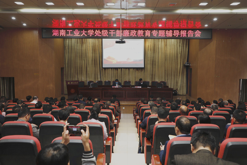 10月29日下午,湖南工业大学处级干部廉政教育专题辅导报告会在崇德楼一楼报告厅举行。省纪委监委驻教育厅纪检监察组长、厅党组成员、工委委员、一级巡视员曹世凯作题为《纪检监察人员漫谈人生》的专题辅导报告。党委书记谭益民主持,在家校领导、全体处级以上干部和湖南省高校第127期处级干部培训班全体学员参加辅导报告会。