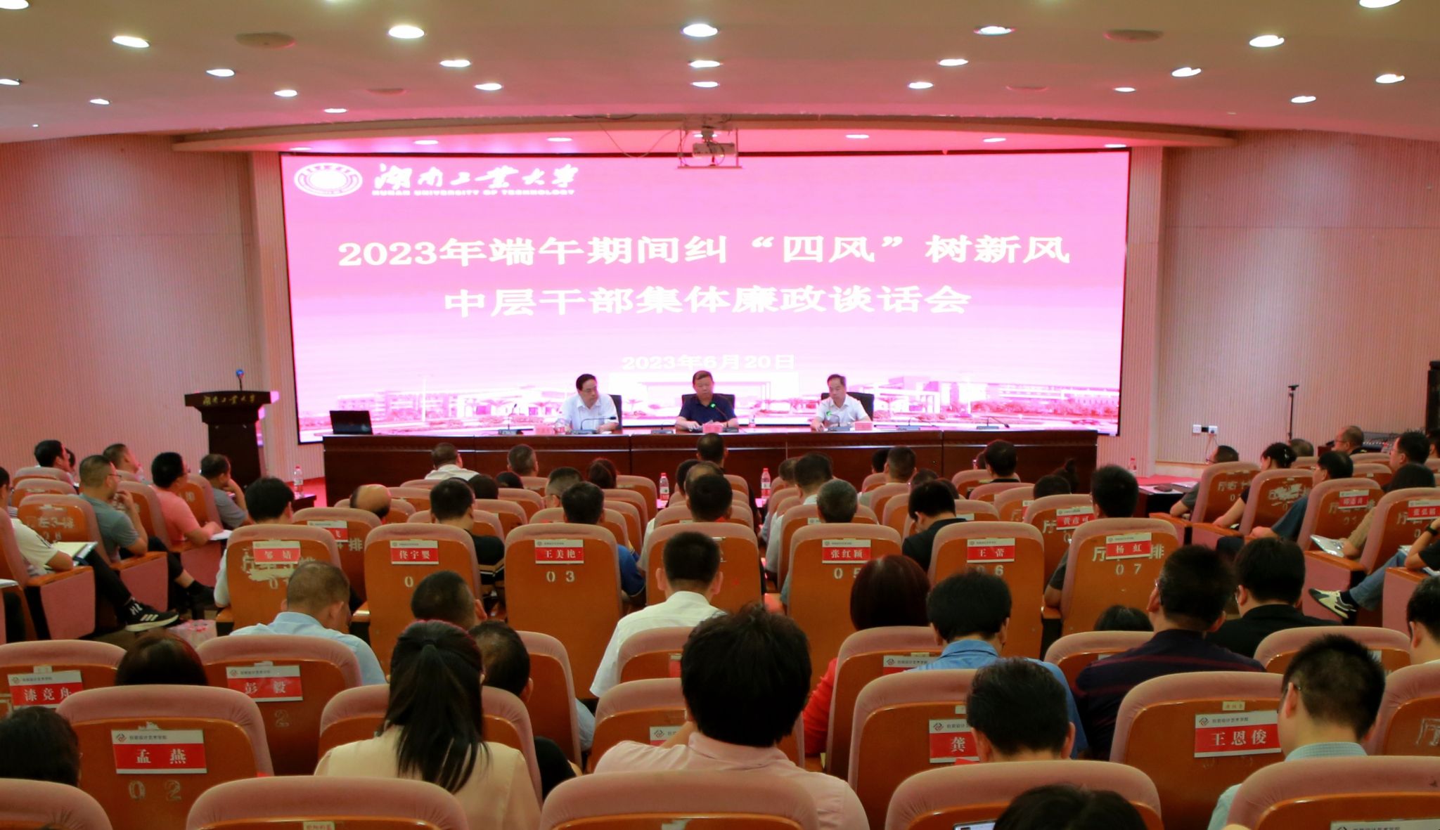 6月20日下午,我校召开2023年端午期间纠“四风”树新风中层干部集体廉政谈话会,全体中层干部参加会议。会议由党委副书记王利华主持。