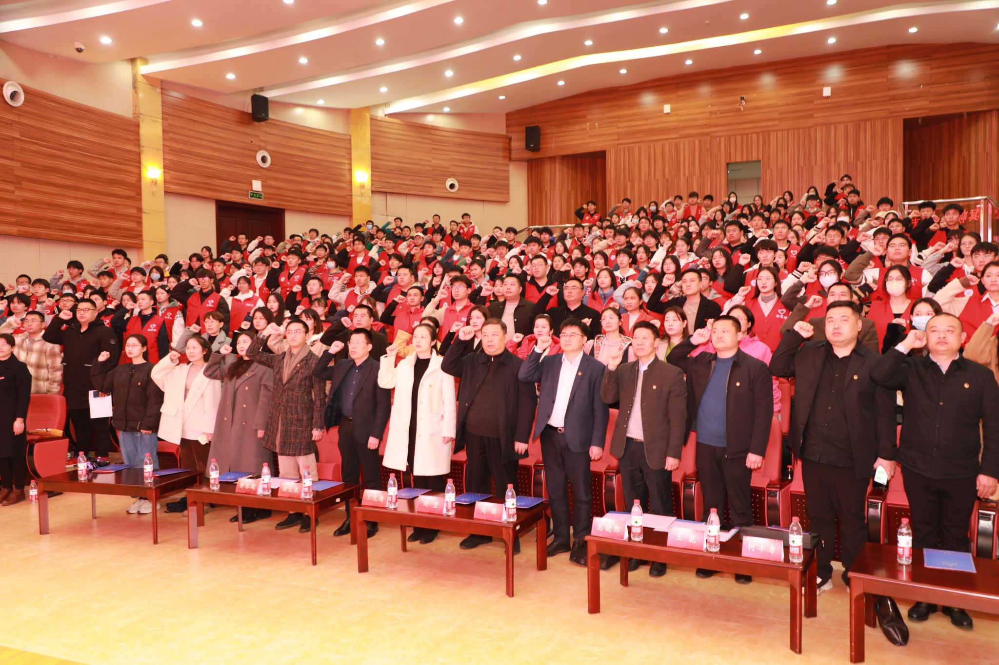 我校志愿者代表,以五个“聚焦”,展示了我校志愿服务开展情况。“我将承雷锋精神,担雷锋使命,做雷锋传人,把有限的生命投入到无限的为人民服务之中去,践行‘奉献、友爱、互助、进步’的志愿者精神,擦亮青春底色,助力社区服务,以实际行动书写新时代的雷锋故事!”一句句铿锵有力的誓词,诠释了志愿者们做雷锋传人的庄重承诺;一声声发自肺腑的宣言,坚定了志愿者们书写新时代的雷锋故事的决心。与会领导、嘉宾及青年志愿者代表共同开启五彩志愿走进幸福社区的征程。