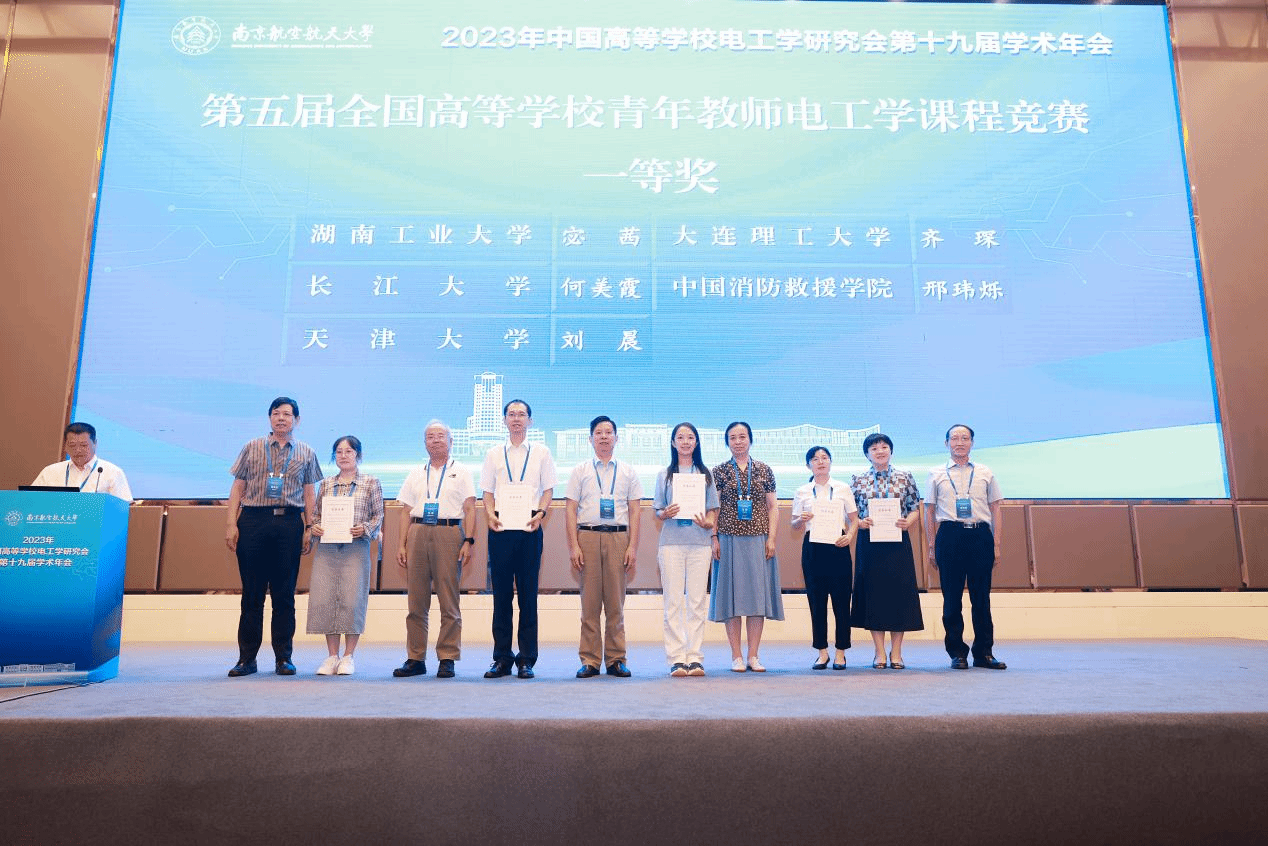 7月11日—13日,由中国高等学校电工学研究会主办,南京航空航天大学承办的第五届全国高等学校青年教师电工学课程教学竞赛在江苏溧阳举行。我校电气与信息工程学院宓茜老师荣获全国一等奖。