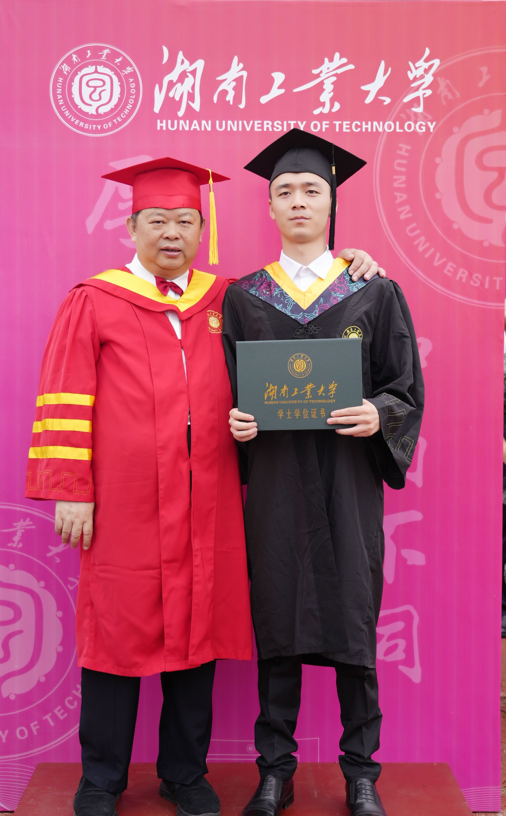 随后,学位授予仪式开启。全体在校校领导、二级学院院长和导师代表站上学位授予台,为每一位毕业生逐一拨穗正冠、授予学位证书。