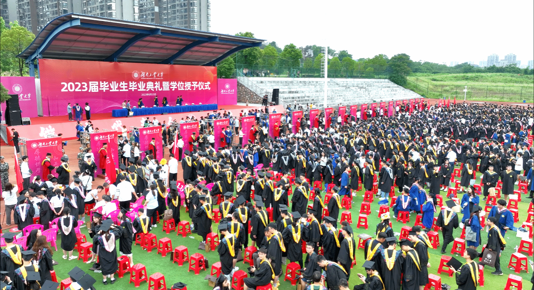 6月15日上午,我校2023届毕业生毕业典礼暨学位授予仪式在第二田径运动场隆重举行。党委书记刘望主持毕业典礼并讲话,副校长佘朝文致辞,全体在家校领导、各职能部门负责人、各二级学院相关代表和部分家长代表出席,共同见证2023届毕业生扬帆启航、开启人生新篇章的重要时刻。
