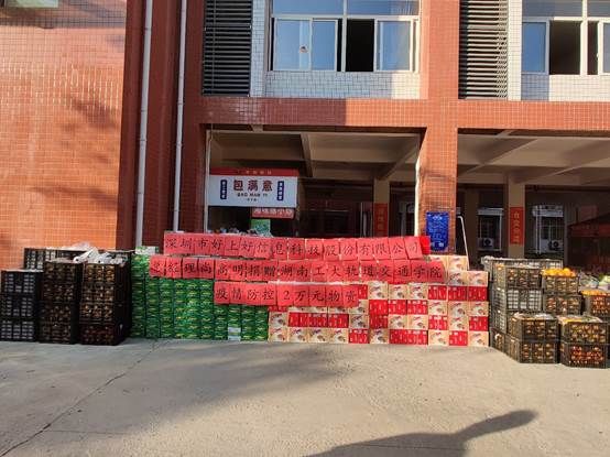 11日,又有一批价值2万余元的纯牛奶、八宝粥、苹果、橙子送到了学校,这是2002级优秀校友、电子信息类2205班企业班主任、深圳市好上好信息科技股份有限公司事业部总经理尚高明先生为轨道交通学院捐赠的生活物资。身在深圳的尚高明校友,心系学院师生,当得知学校因疫情原因暂时供给有些吃紧时,主动联系学院,以个人名义捐赠抗疫生活物资。他表示,一直非常感恩学校和学院对自己的培养,在学校有困难时,希望能尽绵薄之力,与学校共渡难关。
