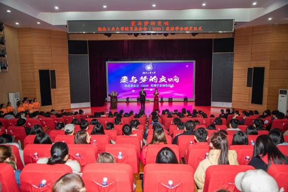 12月1日下午,“爱与梦的交响”湖南工业大学教育基金会(2020)奖(助)学金颁发仪式在音乐学院音乐厅举行。本次仪式集中颁发了“点石奖学金”“远东奖学金”“瑜水慈善奖学金”“华银圆梦奖学金”和“帮困助学、树优奖学”奖(助)学金,共有284名学子获得奖励或资助。校领导刘扬、张亚东、李可兴、李若梅,各奖(助)学金捐设单位代表、部分地方校友会和校友企业代表出席,我校相关部门负责人、获奖受助学生近300人参加了颁奖仪式。