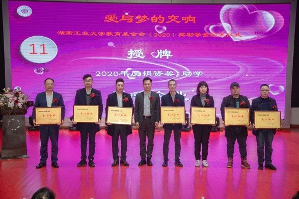 为感谢各爱心企业、机构,校友企业的捐资奖助学义举,学校教育基金会授予湖南点石装饰设计工程有限公司、远东控股集团有限公司、深圳市瑜水慈善基金会、湘潭市圆梦基金会、合众创亚包装服务(亚洲)有限公司、怀化市建筑设计研究院和张家界腾湘旅游文化管理有限公司企业“捐资奖/助学”爱心企业称号,刘扬为其颁发学校教育基金会精心设计制作的“‘捐资奖/助学’爱心企业”荣誉牌。校领导张亚东、李可兴、李若梅分别为获“捐资奖/助学”优秀组织单位的东莞校友会、惠州校友会、中山校友会、怀化校友会、北京校友会、苏锡常校友会等6个地方校友会授牌。