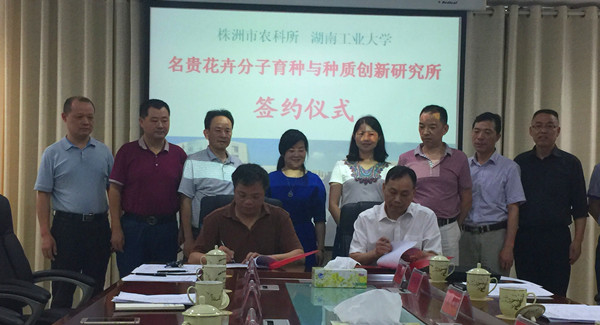 6月5日,株洲市农业科学研究所与我校正式签约,合作共建“名贵花卉分子育种与种质创新研究所”。校长谭益民、株洲市农业科学研究所所长漆本蛟出席签约仪式,并共同为研究所揭牌。