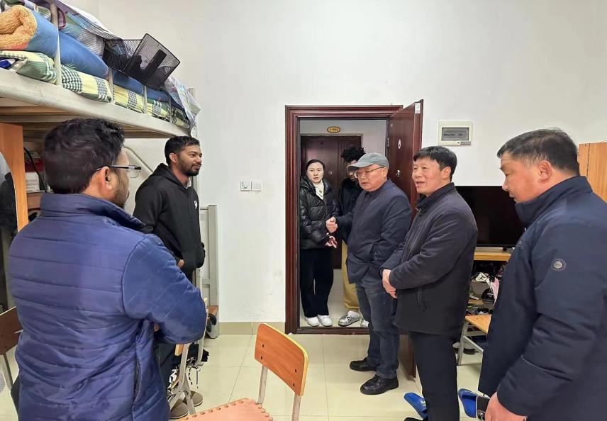 为确保寒假期间留学生安全与稳定,切实消除校园安全隐患,1月24日上午,副校长范晓阳带队开展留学生宿舍安全卫生检查,国际合作与交流处、学生工作部、保卫处等相关职能部门陪同检查。
