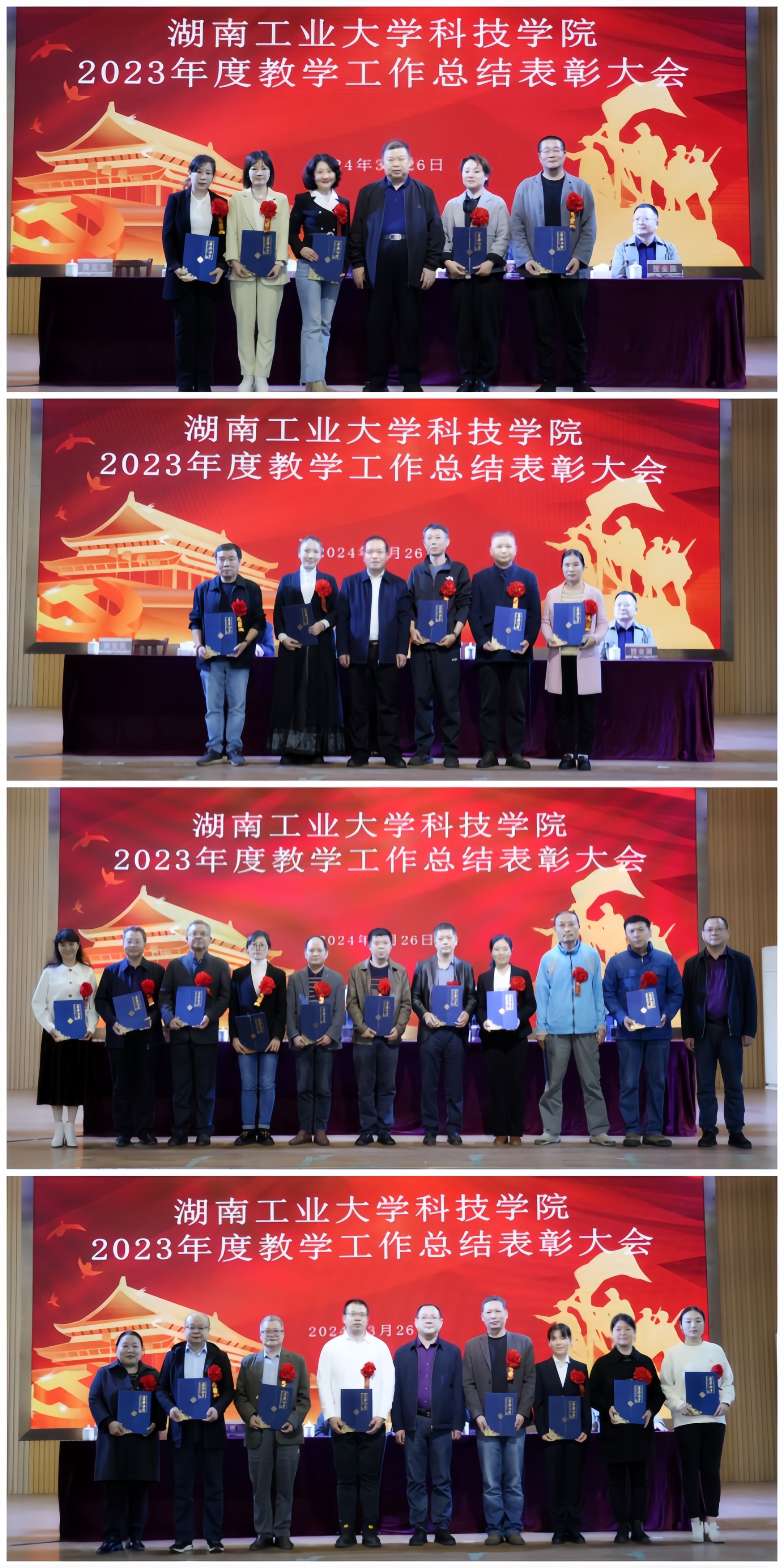 佘朝文宣读了关于表彰2023年度科技学院优秀任课教师的决定。经综合评选,共有30名教师获得奖励。与会校领导为获奖教师颁发了荣誉证书,并与他们合影留念。