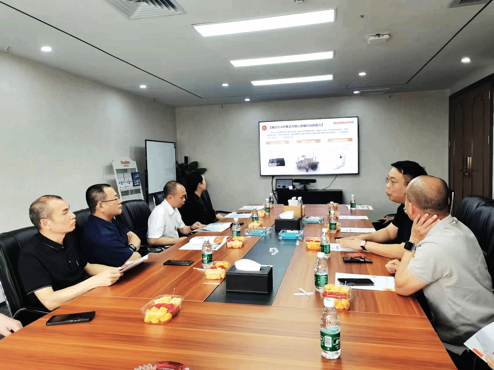 在广州大象科技发展有限公司和宁波尚闻科技(集团)有限公司两家校友企业,电气与信息工程学院校友会黄耀东、肖毅两位执行会长介绍了各自公司的发展现状,并就公司的设立缘起、经营理念、经营战略、发展前景等进行了汇报。双方就如何更好地服务校友、回馈母校以及引导校友积极参与地方经济建设等议题进行了深入探讨。两家企业均表达了与我校合作建立机器人联合实验室的意愿,以推动产教融合和人才培养。于惠钧指出,校企双方要持续深化产教融合,以建立机器人联合实验室为契机,进一步深化与母校的合作交流、助力母校人才培养、共同推动高质量就业。