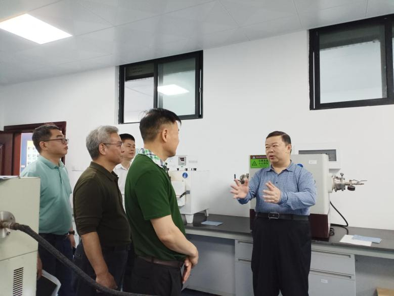 在材料与先进制造学院,刘望一行实地考察了校友捐建的欧科亿粉体预处理、精工硬质合金、廖连山等实验室以及科技创新成果展示中心,并与学院领导班子进行了座谈交流。刘望对学院取得的成绩给予了高度评价,他指出,学院领导班子要继续发扬团结、无私、奉献的好作风,要有大视野、大情怀,不断加强班子能力建设。同时对学院学科专业建设、教师队伍建设、文化建设等提出了殷切期望和要求,希望学院进一步坚持党建引领、立德树人,不断加强师德师风与教风学风建设,进一步凝练彰显办学特色,加强内涵建设,提高教育教学质量和科研水平。