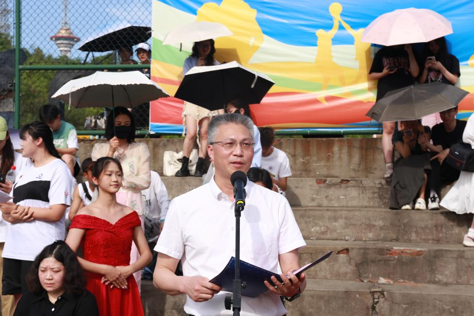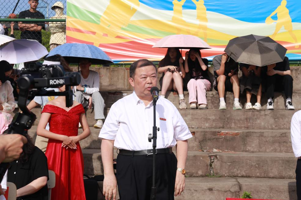 蒋昌波在致辞中表示,本届体育文化节的举办,旨在激发同学们对体育锻炼的浓厚兴趣与热情,进而培养大家形成持久而健康的体育锻炼习惯。他指出,体育锻炼不仅能够使同学们享受其中的愉悦与满足,更能够有效增强体魄、完善人格,并在锻炼过程中磨砺出坚韧不拔的意志品质。他希望同学们能够将竞技场上所展现出的顽强拼搏的体育精神,积极转化为学习生活中的动力与优秀品质。同时,期望全体教师能够秉持奋勇争先、超越自我的精神,全身心投入到教学科研工作中,共同推动学校各项事业实现全面、高质量的发展。
